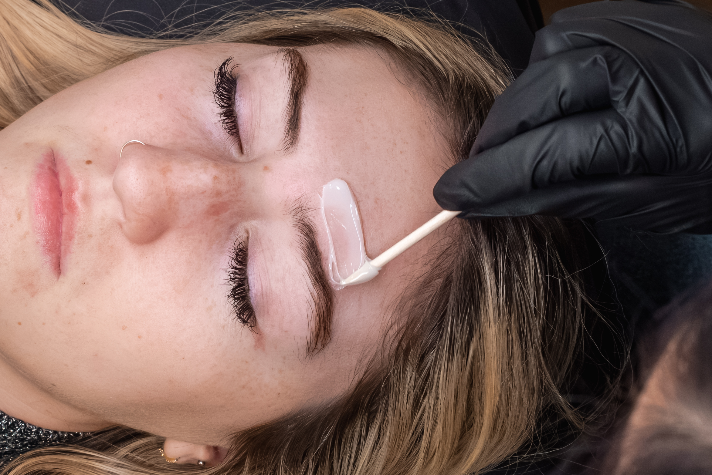 A brow tint uses semi-permanent dye to darken and define your natural brow hairs, giving the appearance of fuller, more noticeable brows. Results last 4–6 weeks.